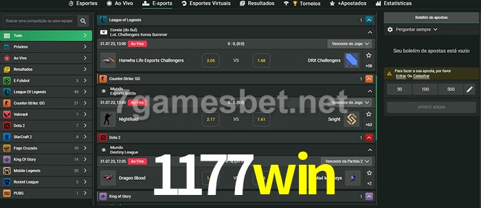 A aposta 1177win oferece aos jogadores a experiência mais conveniente de apostas em eSports!